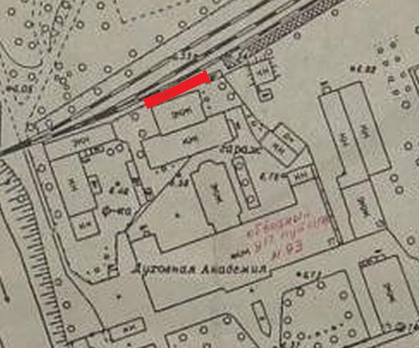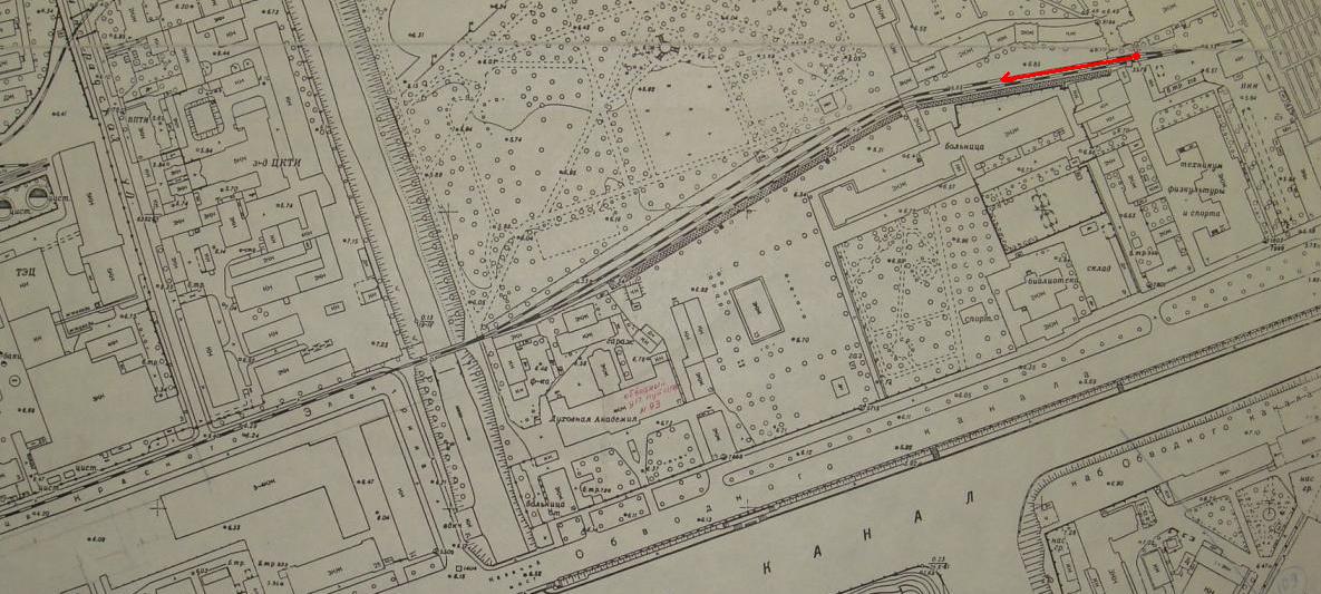 г. На плане 1955 г. пути проходят мимо стены техникума и по территории психбольницы.