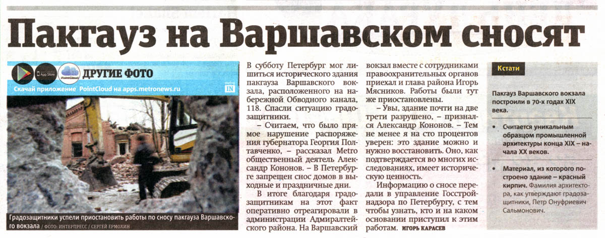 | Цитата: | Варшавский вокзал прощается с железной дорогой