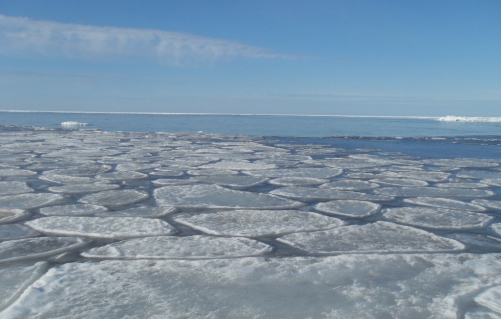 Блинчатый лед. Необходимые компоненты образования - битый лед , наличие зыби и времени воздействия второй на первый. Явление характерное для арктических морей. Но наша Ладога - почти море