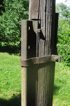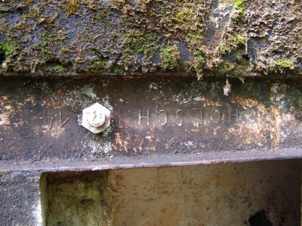 Когда восстанавливал часть стены старой конюшни, то обнаружил старые рельсы - подложенные под заложенную кирпичом арку ворот.