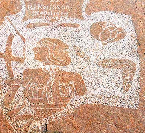 Эта картина 1941 года. Автор её известен - солдат, служил на Бенгщере в качестве артнаблюдателя и в долбил гранит в тоске по возлюбленной из Лотта Свярд. Д. Вилсон о нём рассказывает на своих экскурсиях и кажется там в конце войны случился хеппиэнд.