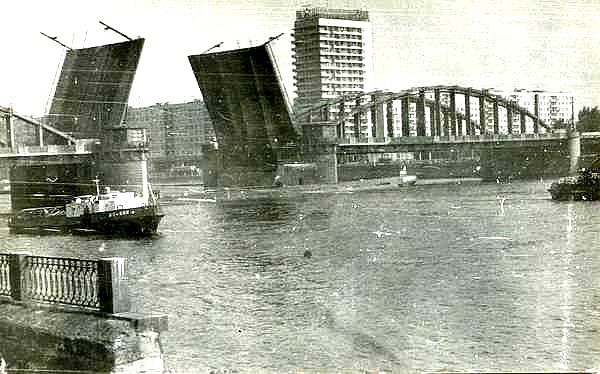Про лодку доводилось историю слышать, правда, сейчас уже детали не уточнить... Вроде бы легла на мост из-за обрыва буксира, а течение там приличное, долго отвести не могли. А лодки водили в Уткину Заводь, там, как раз под нынешним Обуховским мостом у оконечности пирса была яма для транспортного дока, где лодки доковали и вели уже в доке куда-нибудь по ВВП.