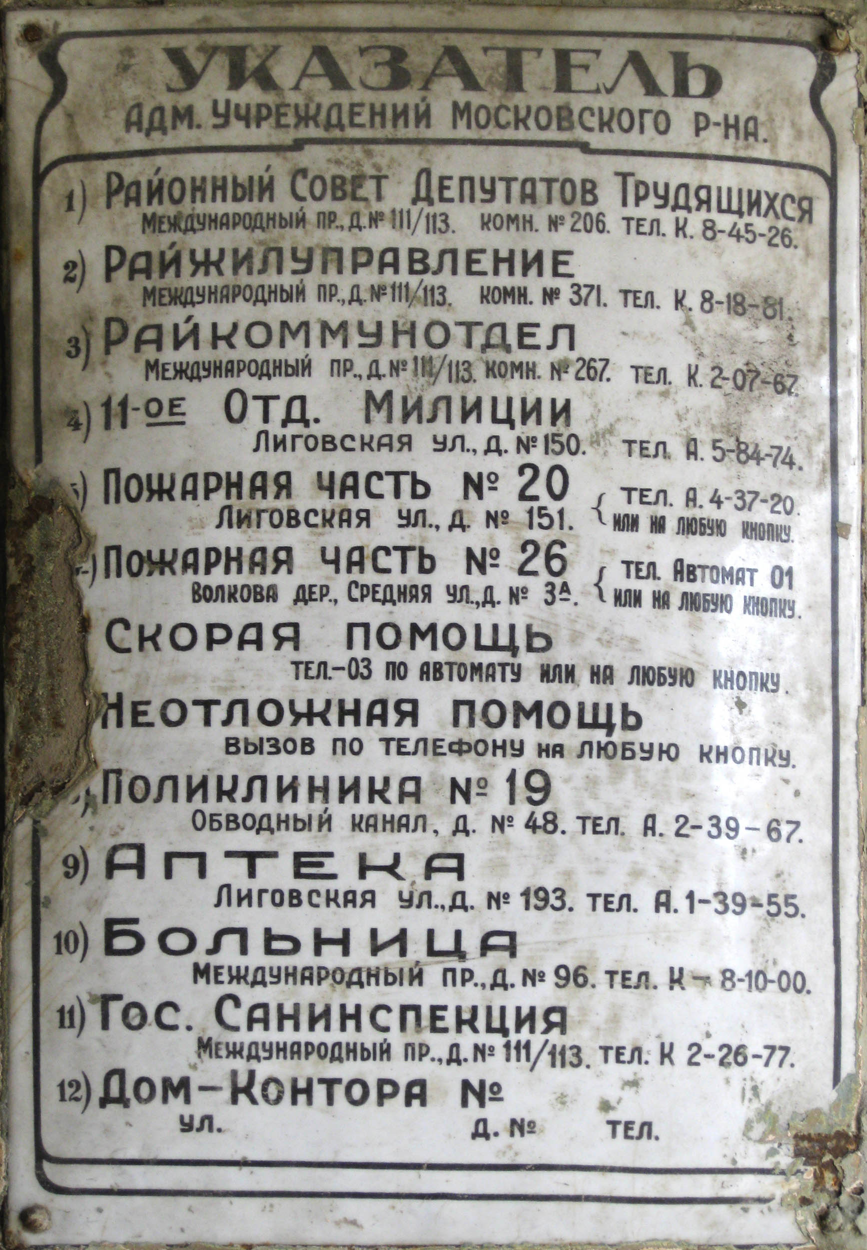 В частности, внизу вестибюля лестницы дома №27 по 8-й Советской улице висел таксофон. И об этом извещала белая эмалированная табличка ТЕЛЕФОН-АВТОМАТ на входной двери. Имела место с начала 60-х.