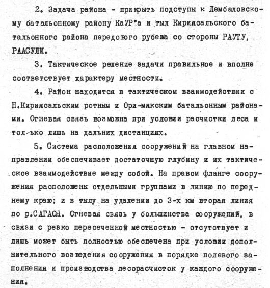 Надо понимать, что Передовой рубеж КаУРа на Кирьясальском выступе представлял собой дерево-земляной рубеж середины 1930х с бетонным недостроем 1939 года, и для обороны должен был быть занять УРовскими частями. Потому что стрелять из трехлинейки в проем для казематной пушки не эффективно, и надо знать куда стрелять. Для сильной обороне в УРе нужны схемы огня, вооружения, связь. Та же картина описывается по 1944 году при спешном занятии финнами сооружений линии ВТ. Не удивительно, что ПР КаУРа был легко прорван практически везде.