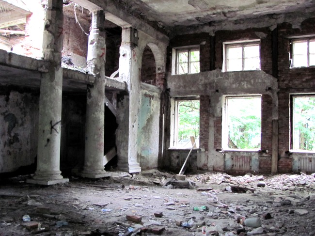 Картина разрушения не оставляет никаких надежд. Все, что можно было вынести - вынесли, все, что могло гореть - горело, все, что могло обвалиться - рухнуло. Да зарасти ты ..., заросло.