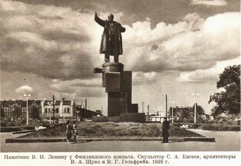 Вот еще фото этого же памятника из Энциклопедического справочника "Ленинград"(1957). За спиной Ильича - провал(там пути вокзала), а справа видно здание по Боткинской,1.