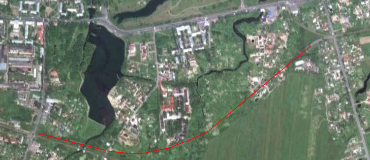 Прорисовав ее, я сделал наложение старого снимка на современный космоснимок яндекса, вот результат: