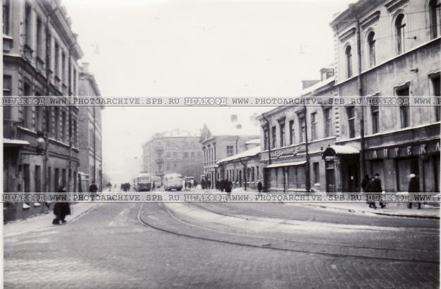 | А по-моему, все-таки вдоль улицы... Если продолжить линию фасада дома за автобусом, получим линию фасада дома №1 (там как раз угол виден). Дом №1 по моей нумерации, надо бы ее переделать в реальную - Б. Самп. д.4 и т.д.