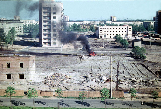 А где-то,по-моему,на месте как раз нынешнего Торжковского рынка( его строительство с громким забиванием свай--это уже память моего школьного детства)--стоял забор,а за ним-какой-то маленький домик необычной формы,чуть ли не полукруглый.Воде бы домик был из пластика,там его построили как экспериментальный для изучения возможностей новых стройматериалов.Так,по крайней мере,рассказывала моя мама--я помню смутно( мне было года три?)--мы с ней гуляли и случайно через то ли открытые ворота,то ли провал в заборе туда забрели. Особой охраны не было.И маме кто-то из находившихся на территории людей объяснил,что гулять тут не надо,а домик этот не простой. Потом там все снесли.