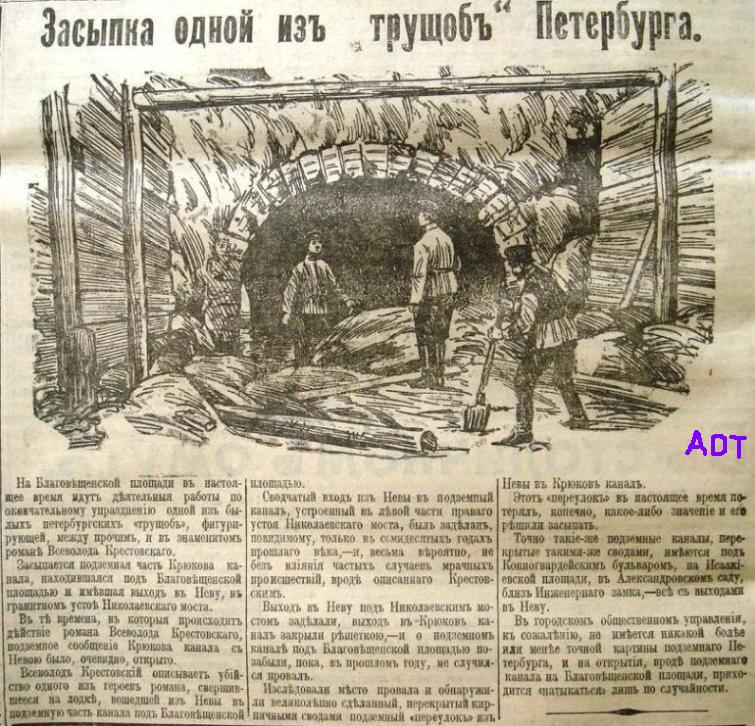 Попадалась мне заметка тридцатилетней давности о путешествии по трубе Адмиралтейского канала под Конногвардейским бульваром.