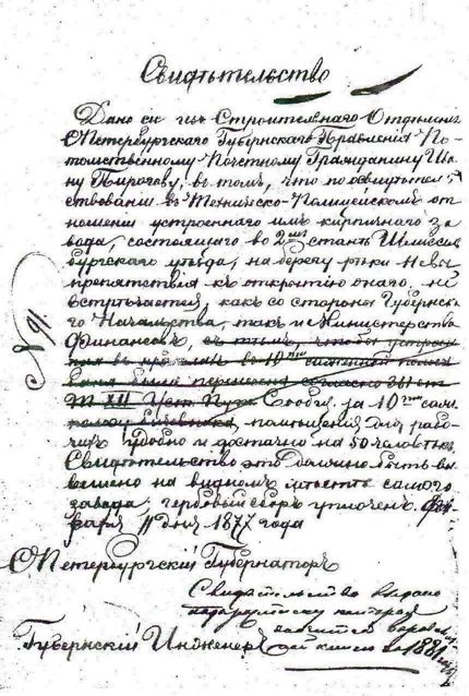 Завод Пироговых был выше по течению Невы.