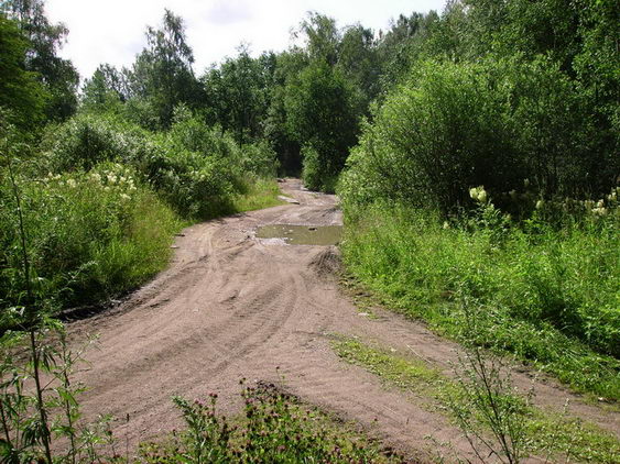 У самой развилки встретились два мальчика с лукошками - черный и белый. Нет, я не прикалываюсь, действительно два мальчика – белый и негр. Поинтересовался я у них про дороги. Да, налево действительно на Красный Сокол, а вот направо оно конечно на Бородинское, но дорога – «уууууу….». Оптимистично…