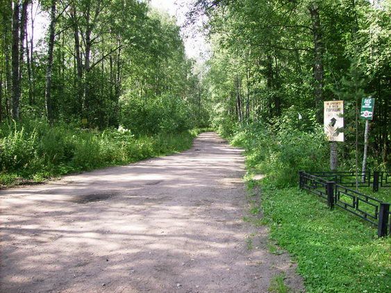 Дорога дальше, к Вуоксе. К бывшему парому. Справа ограда памятника.