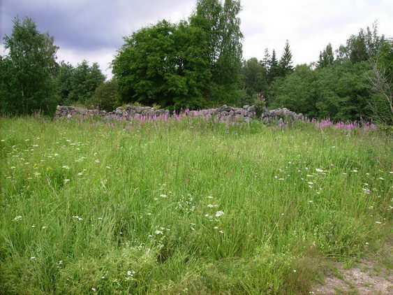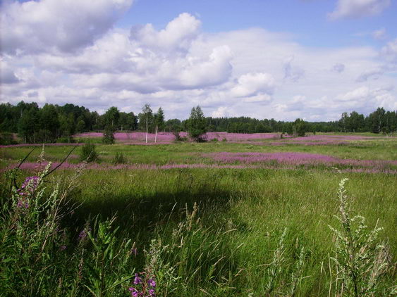 Урочище Балаханово. В высокой траве скрываются финские фундаменты из гранита. У поворота растет группа лиственниц. Огромные зарастающие поля. Тишина, только жужжание слепней.