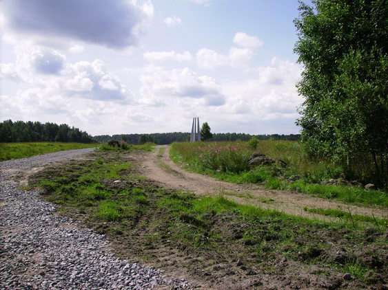 Наконец, после занудного и однообразного лесного отрезка, дорога выскочила на перекресток. Справа памятник 33-му погранотряду (на фото выше он слева т.к. снято с другой стороны, в сторону Мельниково). Напротив дорога на Новую Деревню. Что мы выиграли, проехав лесными дорогами – неизвестно. Чтобы понять какой маршрут лучше, а какой хуже - надо вернуться через Новую Деревню.