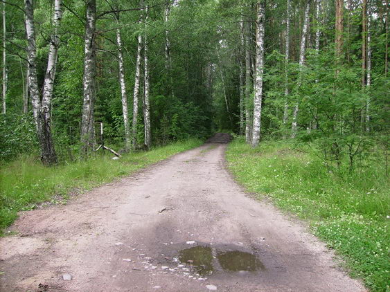 Дальше нам нужно доехать до памятника 33-му погранотряду, что стоит у дороги Мельниково – несуществующий паром через Вуоксу. Туда есть два пути. Первый – через Новую Деревню, второй – по лесной дороге до урочища Балаханово и далее по той самой дороге Мельниково – паром. На одном из велосайтов писали, что вторая дорога симпатичнее, а километраж почти одинаков. Это и определило дальнейший маршрут. Свернули направо…