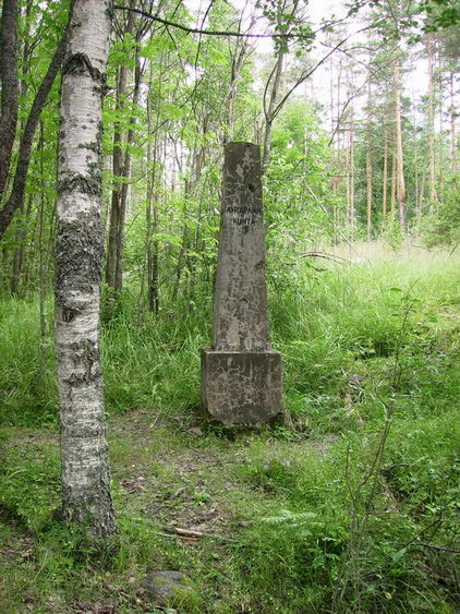 Финский, металлический межевой столб, на границе волостей, слева от дороги.