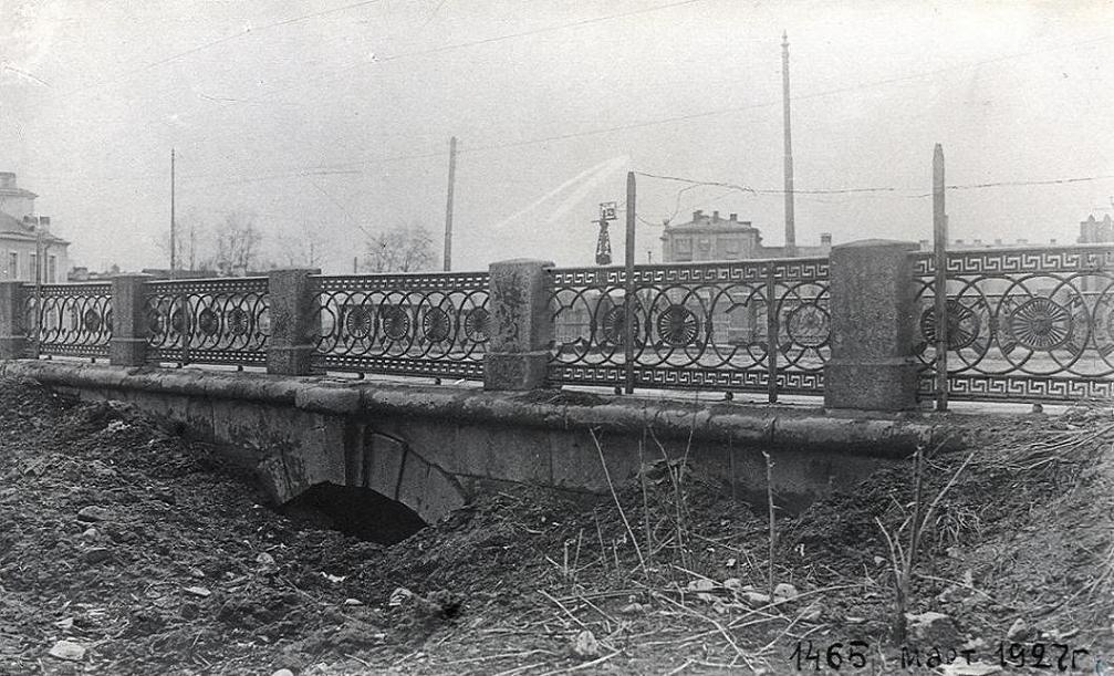 Вообще, предположение о том, что это Таракановка довольно сомнительно: Нарвская застава в 20-е годы представляла собой настолько захолустный райончик, и такого симпатичного мостика с гранитной облицовкой и чугунной решеткой там быть попросту не могло: даже через Обводный канал переправы были по большей части деревянными.