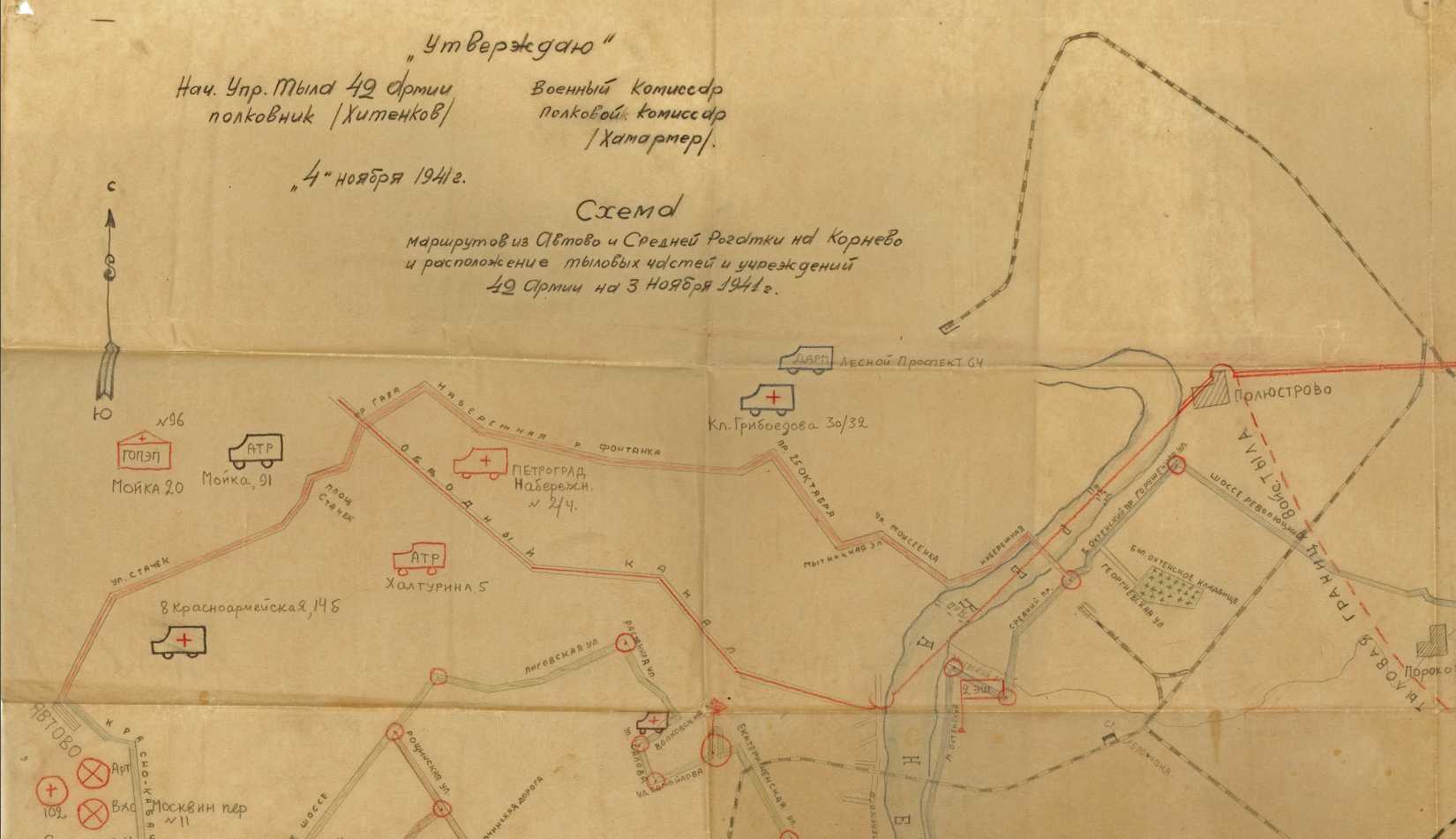 Это подтверждается, например, схемой проезда одной из тыловых частей фронта. Обратите внимание на нижнюю часть плана. Проезд по пр. Стачек обозначен только до Круглой площади, далее поворот на Краснопутиловскую и т.д.