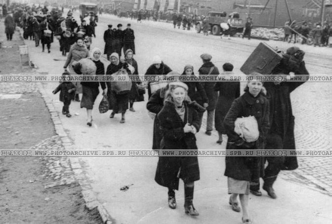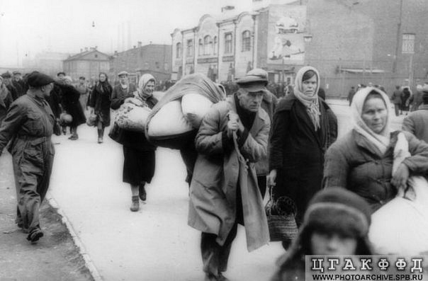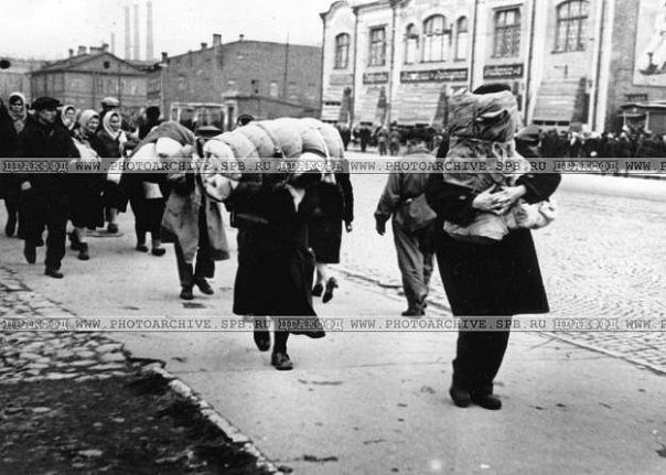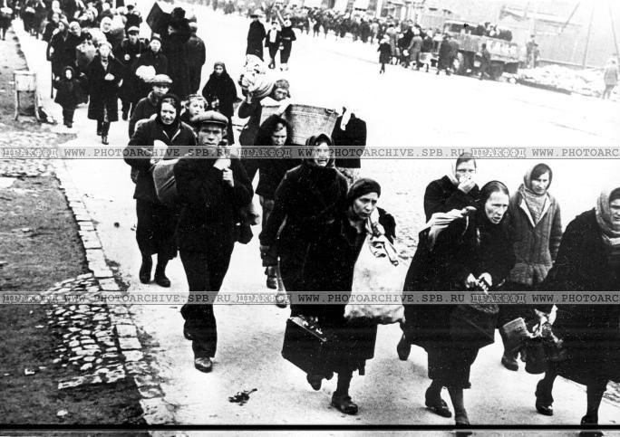 А так же подробностей выселения населения из прифронтовой полосы в середине сентября 1941 года - только несколько фотографий беженцев, идущих по пр.Стачек у Кировского завода.