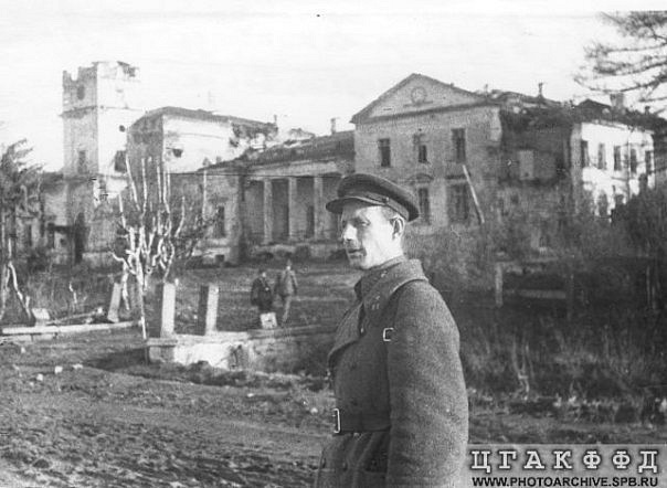 Разрушенное здание Первой психиатрической больницы имени Фореля [пр. Стачек, дом 140 (ныне 158)]. 1942 Н.Хандогин]