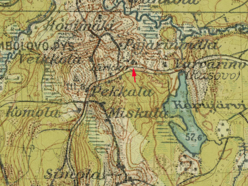Могу перенести точку, где обозначена кирха на современную карту с точностью 100-200м, но там уже садоводческие участки.