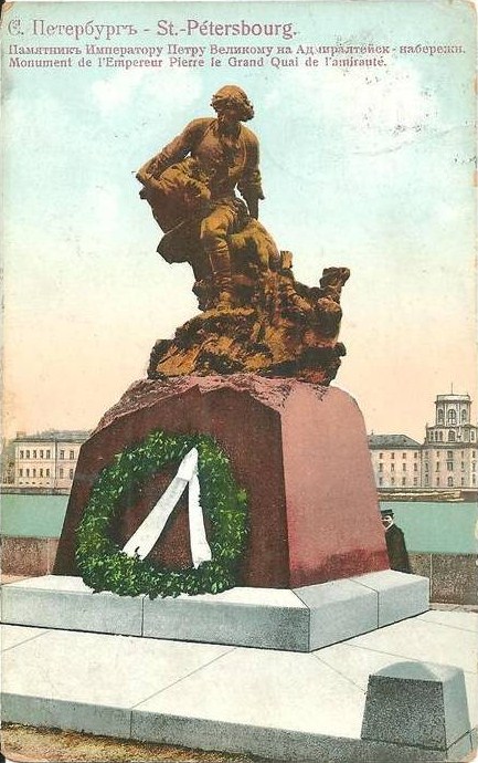 На Адмиралтейской набережной было 2 памятника Петру работы Л.А.Бернштама, оба были сняты и переплавлены в 1918 г.