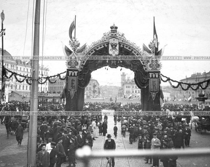 На арках, расставленных тогда по пути кортежа, рядом с монограммой Ники, повсюду вензеля: "E.L.".