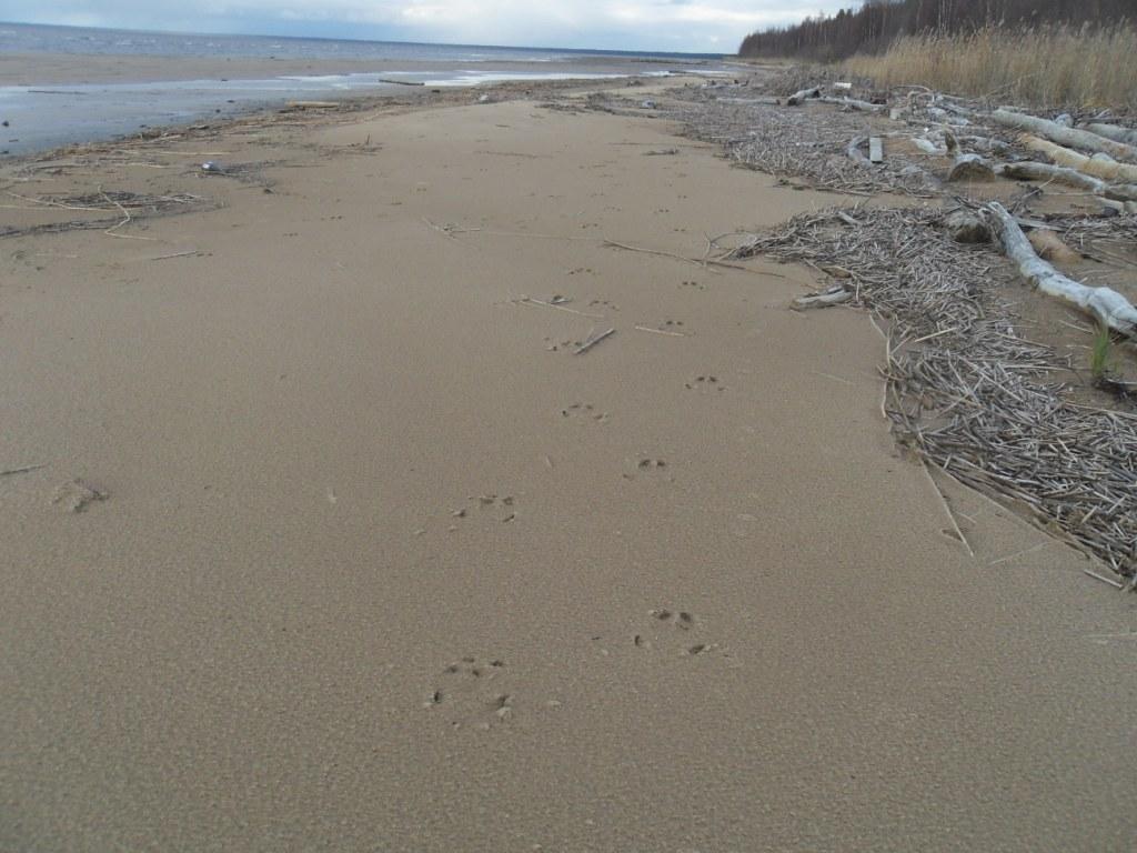 Пустынный ладожский пляж - "книга регистрации посетителей", не хуже снежной пороши.