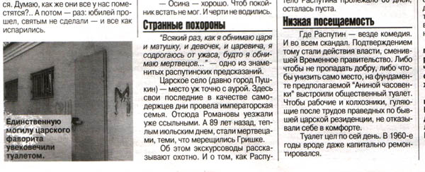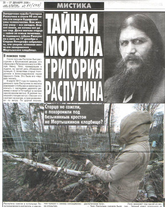 Корреспондент "Московского комсомольца" Елена Михайлина в прошлом году решила внести свою лепту в поиски могилы Григория Распутина:
