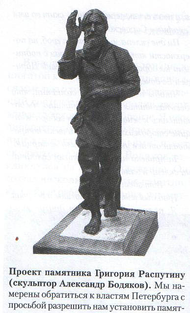 P.S.На сегоднешний день,почти со 100%-ой вероятностью могу сказать,что религиозное почитание Григория Распутина началось примерно с 1990г.и пошло из Богородичного Центра,члены которого смогли умело проникнуть в ряды верующих Московской патриархии,и уже оттуда начать свою пропаганду,как видим достаточно успешную,подтверждением чему стали регулярные паломнические рейды в Александровский парк почитателей сибирского старца,начиная от подмосковных катакомбников (одно время упорно искавших его могилу рядом со стенами Ламского павильона) и кончая небезызвестным доктором Игорем Князькиным из Центра Простатологии,тоже нашедшего,как он считает,место его подлинного захоронения (кому интересно,загляните на его сайт-www.prostata.ru).