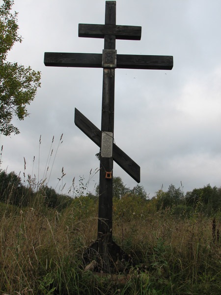 Главная улица, вернее, тропинка Погостья идет перпендикулярно железной дороге, чуть севернее платформы. По ней нужно идти за околицу, затем пройти мимо родника, от него — по мостику через Мгу, которая в этом месте имеет вид ручейка. Возле мостика по левую руку от тропинки — большой крест, установленный в память о расстрелянном в 1937-м году в этих местах протоиерее Иоанновского монастыря И. Н. Орнатском, а также в память о других репрессированных: