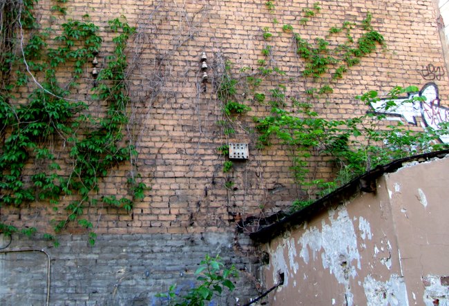 Вы не о том. В этих кварталах было (да и осталось) достаточно много дворницких сараев. Они напоминали по виду гараж, имели ворота, а стены часто для экономии материалов и вентиляции выкладывались из кирпича шашечками. У нашего дома например в таком хранились красные флаги между праздниками. Какой-то добрый человек через дырявую стену внутрь бросил что то горящее и флаги стали совсем красными. Приехавшие пожарные тушили святыни как-то совсем без пиитета. Ну это так отступление.