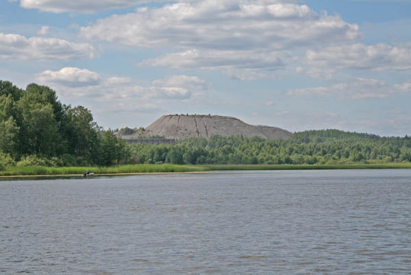 Скала километрах в трех выше по течению привлекла наше внимание. На деле это оказалась карьерная выработка. Так как истратили полбака решили , что пора возвращаться. На всякий случай заправились в Каменногорске. (заправка метрах в 500 от берега)