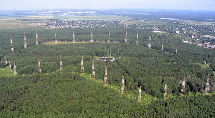 За полем виднеется внушительный зеленый массив, над которым возвышаются антенны устроенного в 1961 г. радиоцентра № 11, некогда вещавшего на длинных и других волнах на все страны "второго мира", вплоть до Африки и Латинской Америки, а ныне — только СВ/КВ-диапазона. Особенно выделяется "сердечко" из КВ-антенн СГД-РАД: