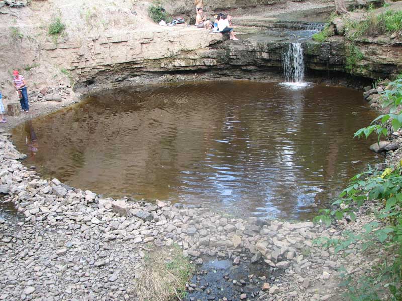 По случаю необыкновенно жаркого лета воды здесь было очень мало, а народу — много. Я даже и не рассчитывал снять водопады без купальщиков.
