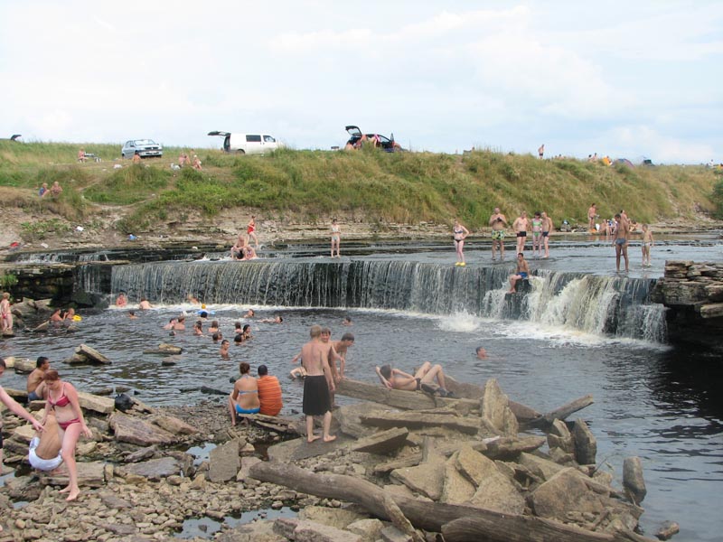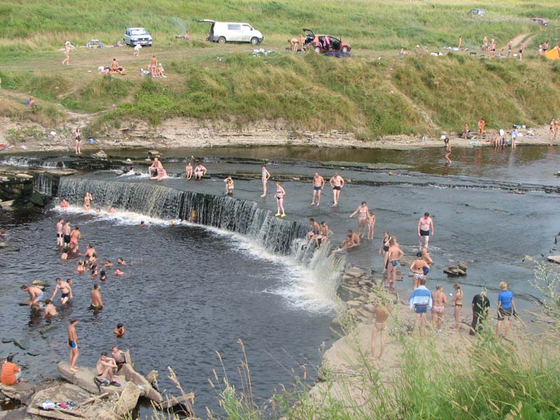 Буквально в 200-х метрах от братской могилы находится намного более посещаемое место — Тосненский (большой) водопад, на котором по случаю жары и выходного дня случилось то, что мама метко называет "птичий базар":