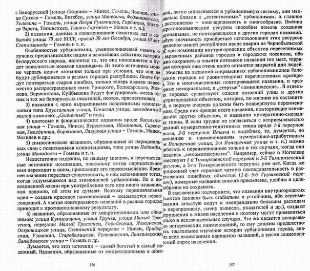 Откопался в хозяйстве такой раритетец - А.М. Мезенко, "Урбанонимия Белоруссии" (Минск, 1991). Полистал, обратил внимание на кусок из конца работы, возможно, будет кому-то интересно: