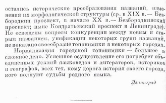 Многими они воспринимались как ошибочные и неуместные. Примечательно в этом отношении высказывание Г.О. Винокура (после цитаты идёт ссылка на статью 1923 г. – прим. L.): «Укажу, например, на разительный пример неумелого обращения с языком при переименовании улиц, проведенном в годы революции. Конечно, чтить революцию должно и необходимо, но кто, в самом деле, станет называть Невский “Проспектом 25-го Октября”, какой москвич выговорит “Улица Огарева”? Обыватель разрешил эту ошибку очень просто: вместо “Улица Огарева” он написал на домовом фонарике “Огарева улица” и тем самым спас положение».