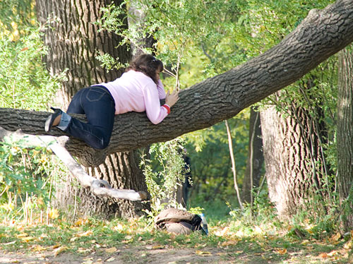 В парке вовсю позируют девушки.