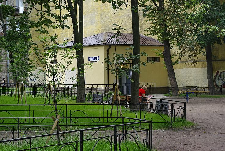 Туалет в сквере им. Веры Слуцкой между Донской улицей и 15-й линией Васильевского острова.