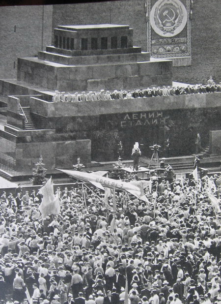 Кстати (sorry за офф-топ ), примечательная фотография. Судя по всему, встреча Германа Титова в Москве после полёта, т.е. август 1961 г. Т.о. и "совместному проживанию", и двум фамилиям на мавзолее оставалось всего 2 месяца...