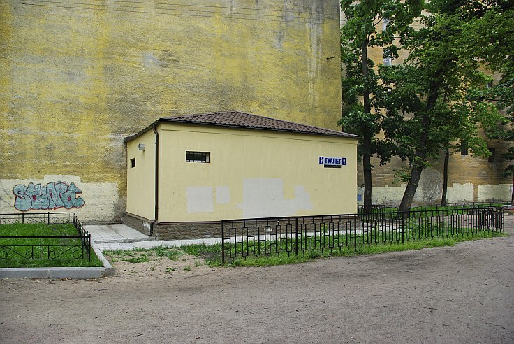 Туалет в сквере им. Веры Слуцкой между Донской улицей и 15-й линией Васильевского острова.