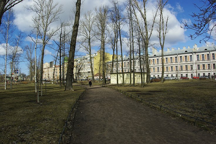 В сквере перед Князь-Владимирским собором (метро "Спортивная").