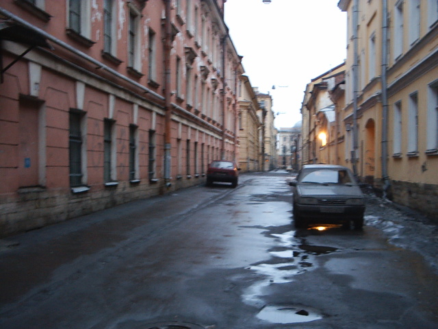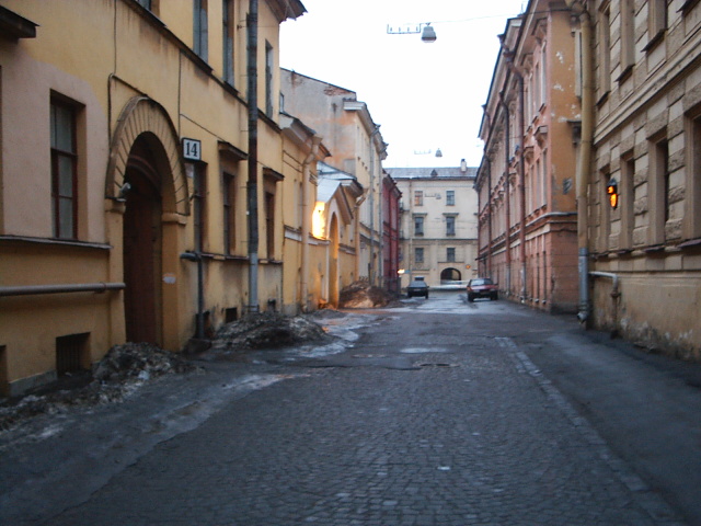 Но вот что интересно. До реконструкции переулка участок от 7-й линии до створа Днепровского пер. имел покрытие в виде брусчатки(фото№1, 2004г). Далее от Днепровского пер. до 8-й линии он был укатан в асфальт. В некоторых местах асфальтовое покрытие имело проплешены, в которых очень отчётливо было видно булыжную мостовую. На фото№2(2004г) можно наблюдать только асфальтовое покрытие. Всё выбоины на момент съёмки были в воде.