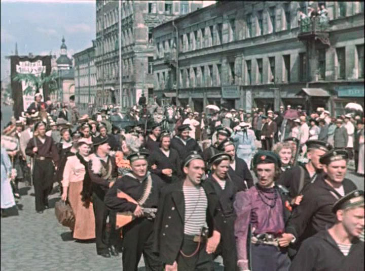 Но давайте обратимся к кинематографу. В фильме "Балтийская слава" от 1957 года мы чётко наблюдаем булыжник по 6-й и 7-й линиям в р-не от набережной до Академического пер. (фото№3).