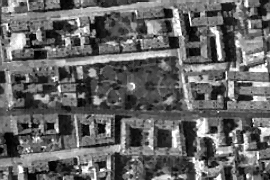 Тут были космоснимки Ленинграда 66 го года. Надо посмотреть нет ли в сквере чаши фонтана. Скульптур точно не было, а вот насчет чаши - не уверен.