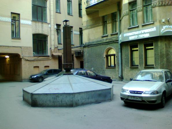 а может быть, фонтан так странно выглядит, потому что недействующий и накрыт крышкой?