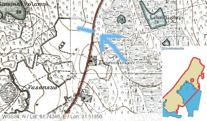 Когда я был в Питкяранте ,на местности,6 км. от нее это точно перекресток после р.Койринйоки (прямо-Сортавала ,направо –городское кладбище-далее на Лоймолу). Но это не совпадает с финской картой на 17.02.40 где 208 полк находится в районе высоты 68.0-гора Воройенкиви.