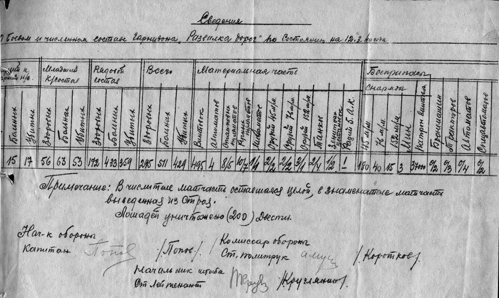 Силы противника окружающие гарнизон в первое время были незначительные.Начиная с первых дней и до последних дней обороны